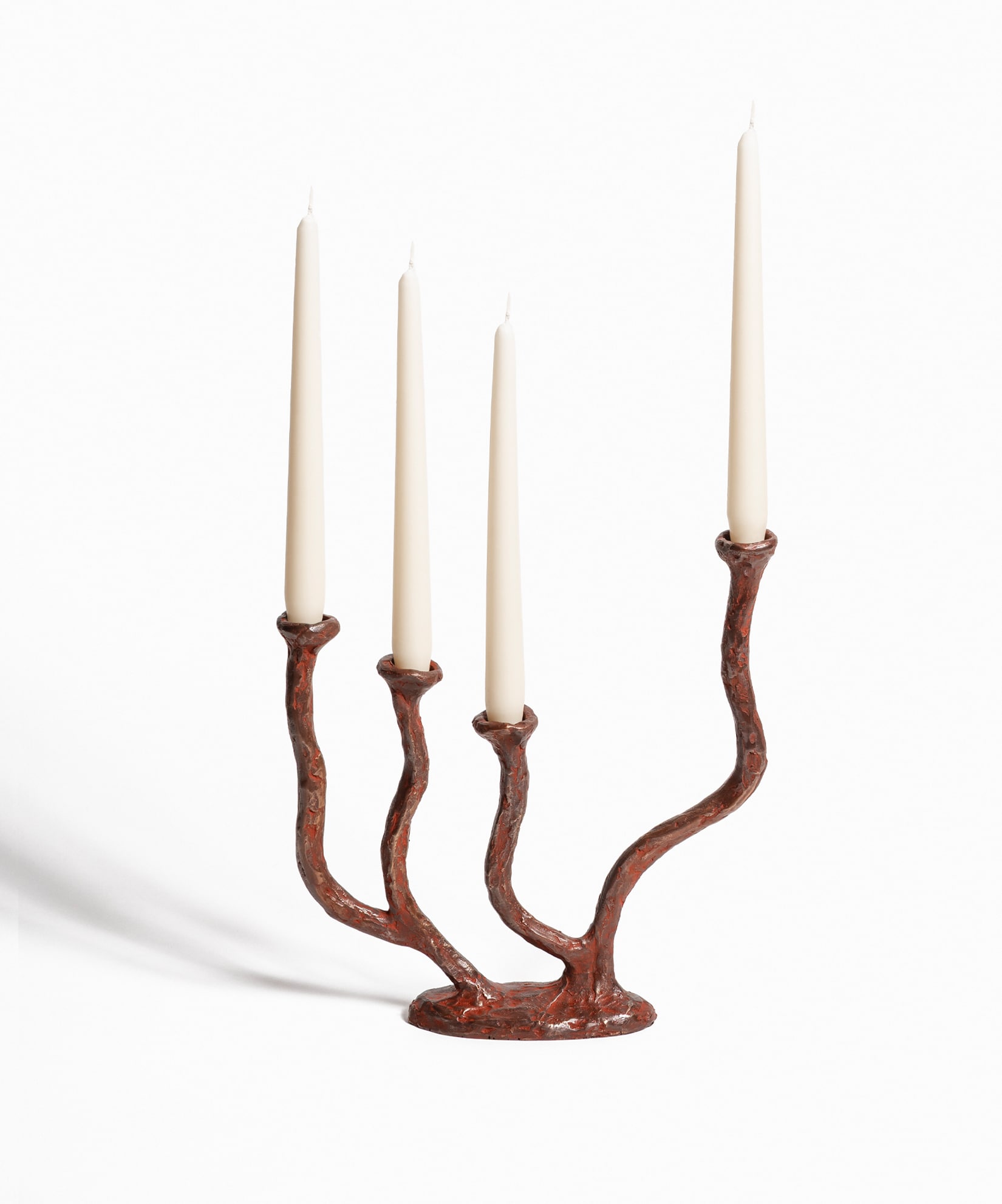 Alga Quartetto Candle Holder with 4 arms sculpted as organic stems fused in Natural Bronze using the lost-wax casting technique and finished in red patina. Handcrafted and Made in Italy. Designed by Osanna Visconti in Milan and produced in an Italian art foundry. Each piece is unique.